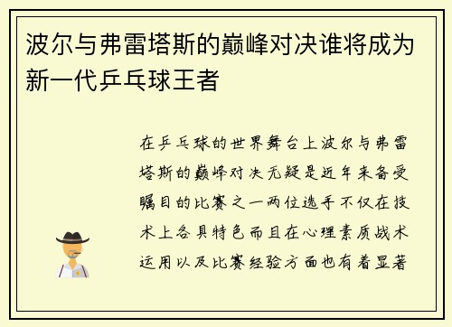 本文将围绕“维迪斯与哥本哈根的激烈对决展现足球魅力与战术智慧的巅峰较量”展开讨论。首先,文章将简要回顾这场比赛的背景和重要性,然后从四个方面深入分析其所体现的足球魅力和战术智慧。这四个方面包括比赛的激烈程度、技战术的运用、球员表现及其影响,以及比赛后的反响与启示。通过多个角度的分析,旨在全面展现这场精彩对决所带来的深远意义,体现出足球不仅是一项运动,更是一种艺术和哲学的结合。 1、比赛的激烈程度...